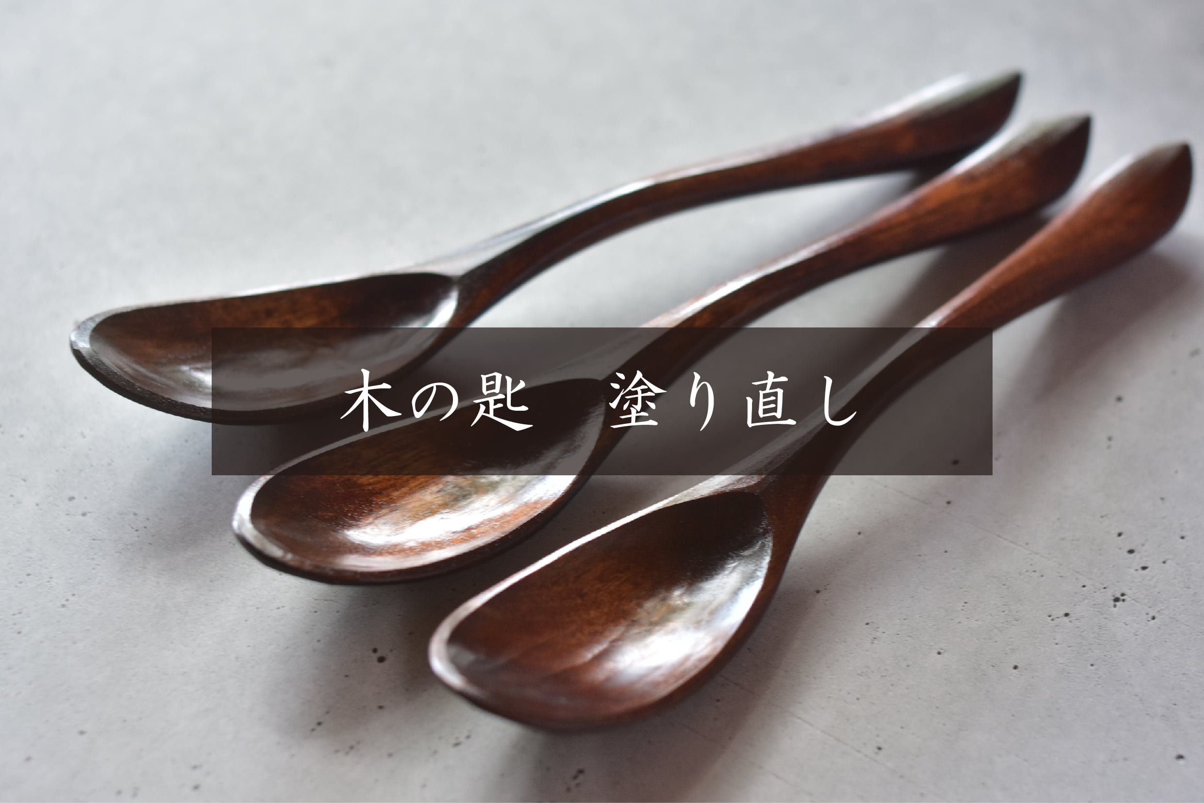 内橋木工舎では、お買い上げいただいた匙を永くお使いただけますよう、塗り直しを行っております。お預かりした匙は「拭き漆」により漆を塗り直してお返しさせていただきます。