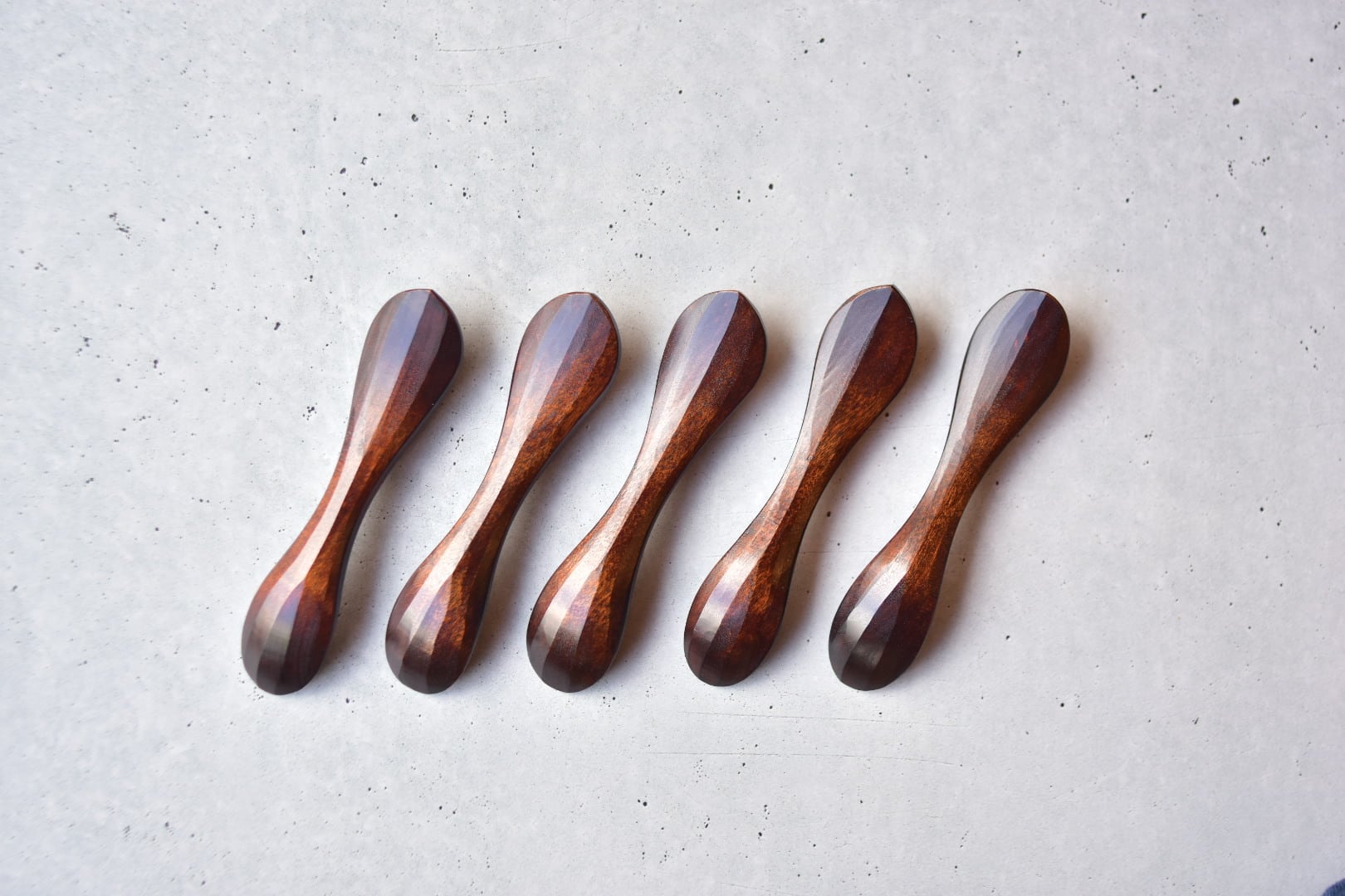 一点ずつ手仕事により制作しています。南京鉋という特殊な鉋が生み出す流線型のシルエットが特徴で、手にフィットする持ちやすい形状になっています。また、匙面を薄く仕上げているので、口あたりが良く軽い力でご使用いただけます。